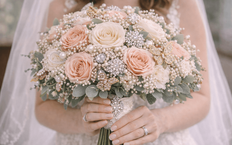 Quando se fala em buquê de noiva artificial, a atenção costuma ir direto para as flores e para o formato do arranjo. Mas, na prática, muitos buquês ganham personalidade justamente por causa dos elementos decorativos que entram como complemento visual.