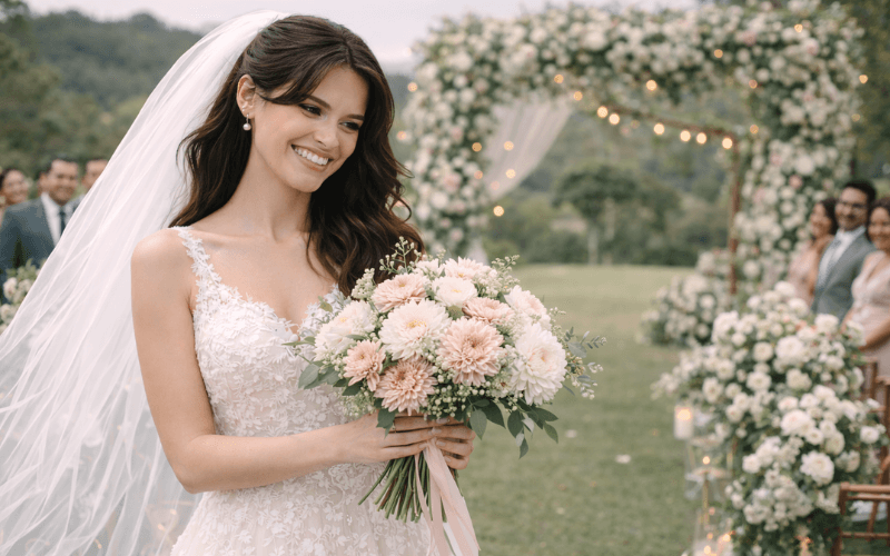 Escolher o modelo do buquê de noiva é um passo importante. Mas depois que o formato já está definido, vem uma etapa que muda completamente o resultado final: a escolha das flores. É aqui que o estilo do buquê de noiva artificial realmente ganha identidade.