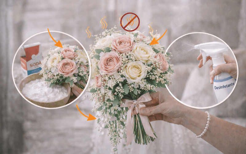 Isso acontece porque odores não dependem apenas de sujeira visível. Partículas microscópicas, ar parado e absorção do ambiente são suficientes para criar aquele cheiro típico de item guardado por muito tempo. Mesmo sem manchas ou resíduos aparentes, o buquê pode reter traços do ar ao redor, principalmente se ficou exposto em locais fechados.