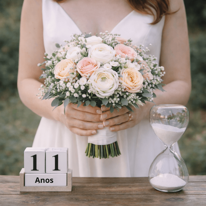 Um buquê artificial bem feito dura anos quando bem cuidado. Mais do que isso, ele oferece previsibilidade, estabilidade e menos preocupação no dia do casamento.