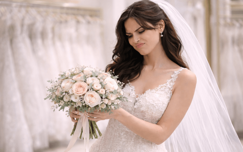 Algumas noivas gostam da ideia de um buquê perfumado e acabam passando perfume direto nas flores. Isso pode manchar, alterar a cor e até deixar resíduos nas pétalas.